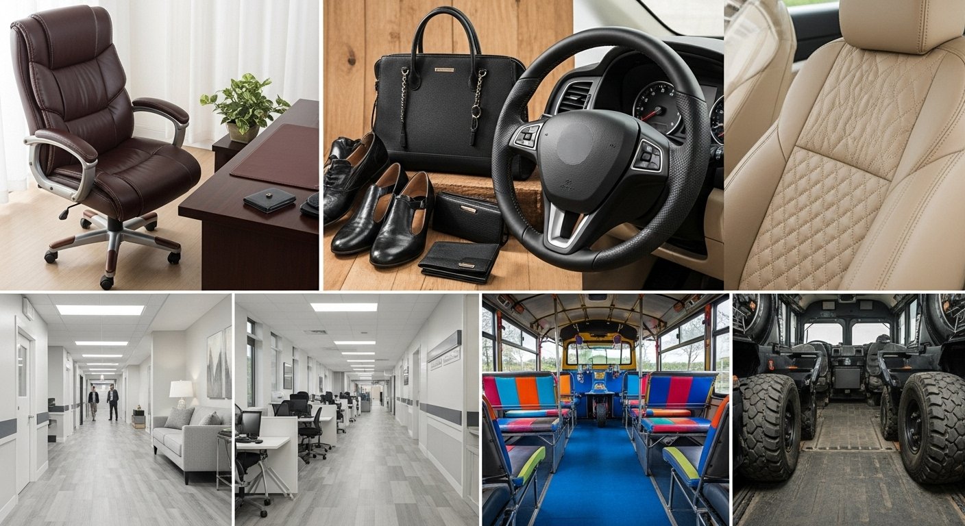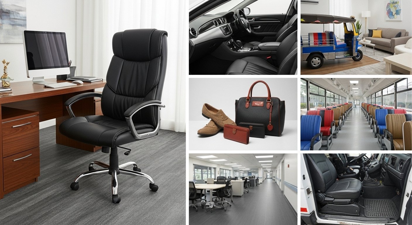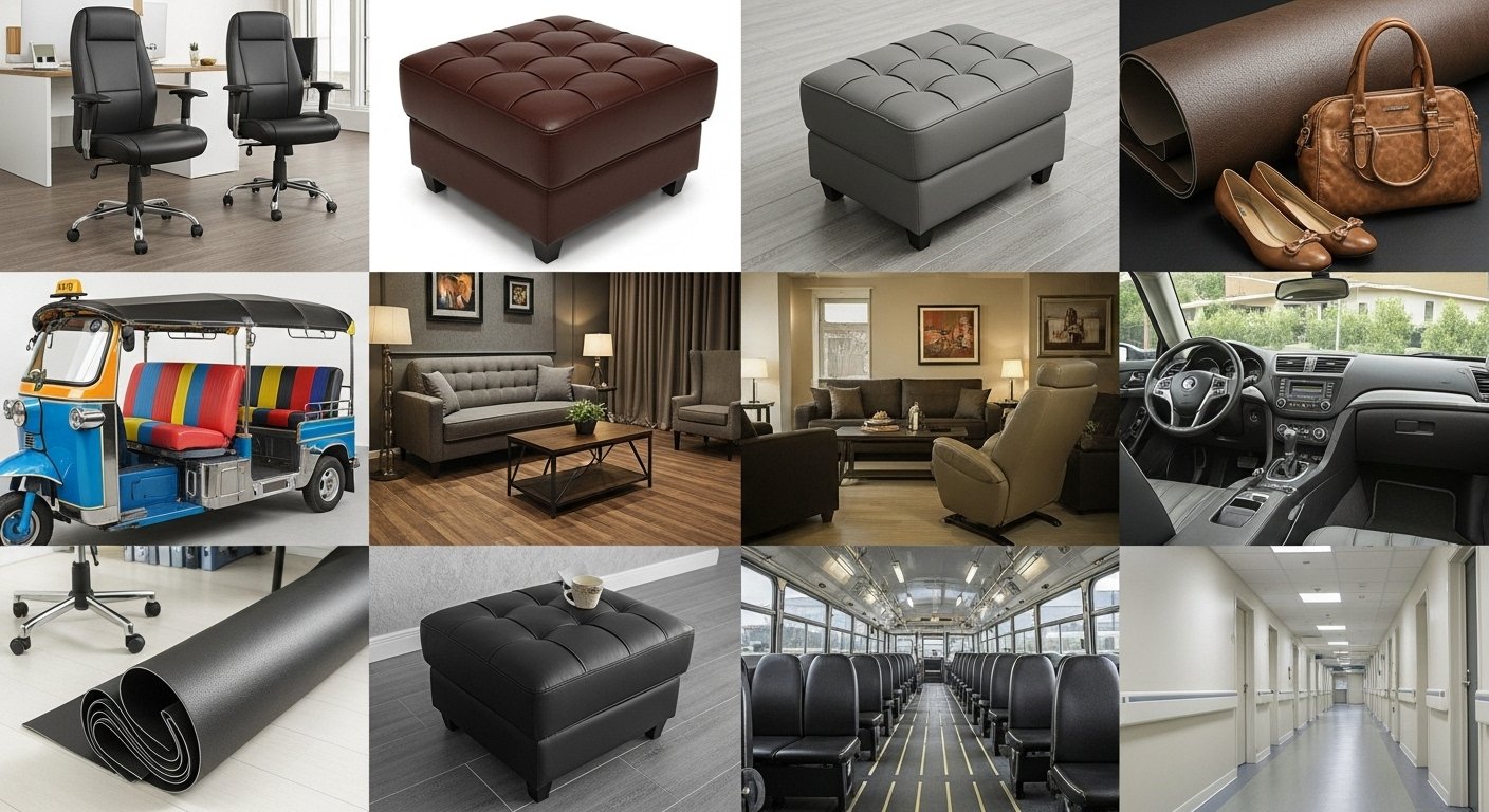 Luxury faux leather office chair Comfort and style that lasts in the workplace. Durable faux leather car upholstery A touch of luxury and wear-resistant quality. Faux leather bags and shoes Stylish design and quality comparable to genuine leather. High-quality office flooring Durability, quietness, and a modern touch for every space.
